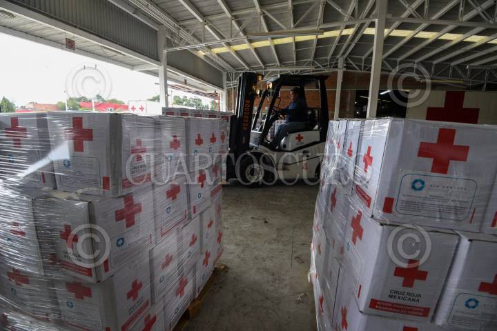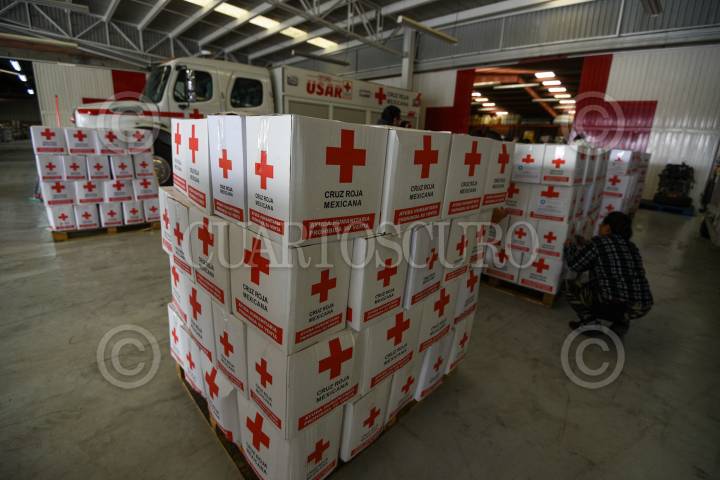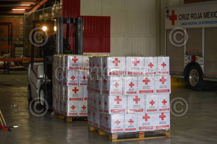 TOLUCA, ESTADO DE MÉXICO, 27OCTUBRE2023.- En el Centro Nacional de Capacitacion y Adiestramiento (CENCAD) ya se alistan y empaquetan despensas básicas que serán trasladadas en apoyo a la población damnificada por el Huracán Otis en el estado de Guerrero. Toda la ayuda humanitaria que acopia Cruz Roja Mexicana se concentra en Centro Nacional de Desastres dentro del CENCAD. FOTO: CRISANTA ESPINOSA ESPINOSA AGUILAR /CUARTOSCURO.COM