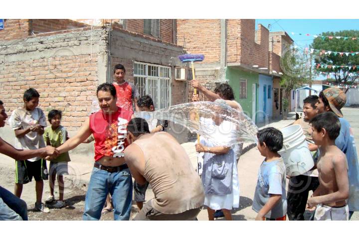 SAN LUIS POTOSÍ, SAN LUIS POTOSÍ, 03ABRIL2010.- El Sábado de Gloria cada quien lo conmemora como quiere esta Semana Santa como en alguna colonia de la ciudad se dedican a mojarse ante la carencia de este vital liquido. FOTO: MARCELO PALACIOS/CUARTOSCURO.COM