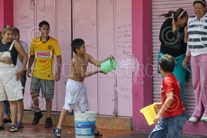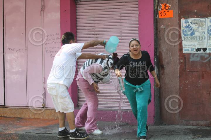 MÉXICO, D.F., 23ABRIL2011.- Niños, jóvenes y adultos se mojaron en la calle de Colombia en el Centro Histórico como parte de la celebración del Sábado de Gloria y en donde pasaron por alto la recomendaciones de abstenerse de desperdiciar el vital liquido. FOTO: RODOLFO ANGULO/CUARTOSCURO.COM