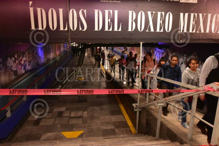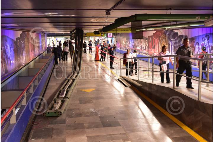 CIUDAD DE MÉXICO, 27SEPTIEMBRE2018.- Una parte de la luminaria cayó, ubicada en el transbordo de la Línea 8 del Metro, en donde se conectan las estaciones Garibaldi y Ciudad Azteca, dejando dos personas lesionadas quienes fueron trasladados por paramédicos de la Cruz Roja a hospitales cercanos. FOTO: ARMANDO MONROY /CUARTOSCURO.COM