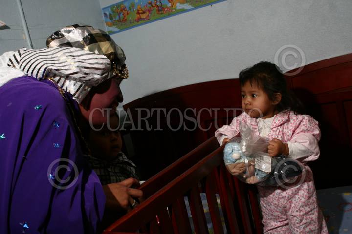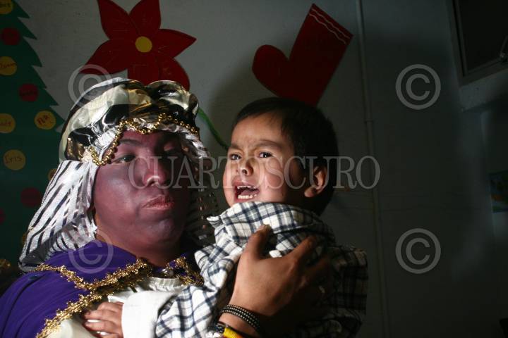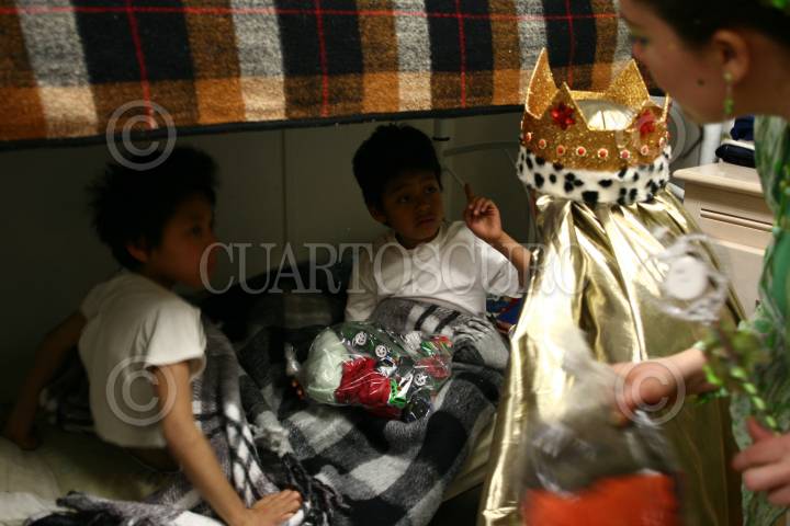 MÉXICO, D.F., 06ENERO2009.- Los reyes magos realizaron un recorrido por albergues de la ciudad, despertando a los niños para regalarles juguetes, dulces y ropa. FOTO: SÁSHENKA GUTIERREZ/CUARTOSCURO.COM