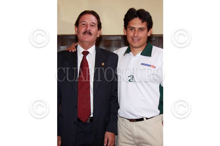 PUEBLA, PUEBLA, 20FEBRERO2009.- Héctor Cuervo Pensado, Coach de los Aztecas de la Universidad de las Américas de Puebla acompañado por Ricardo Novas García, director de formación y desarrollo deportivo, dieron a conocer la retirada del couch tras recibir una mejor oferta de trabajo como asistente de coacheo del equipo de los Borregos del Instituto Tecnológico de Estudios Superiores de Monterrey, campus Estado de México. FOTO: JAVIER PALACIOS/CUARTOSCURO.COM