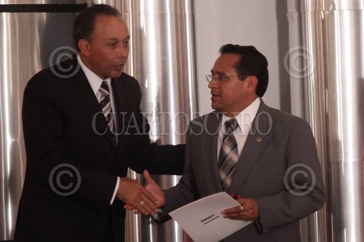 MÉXICO, D.F., 22ABRIL2010.- El senador Carlos Navarrete se despide de Fernando Gomez Mont, secretario de Gobernación al termino de una reunión en donde el titular de gobernación entrego la propuesta de fuero militar en el Senado de la República. FOTO: RODOLFO ANGULO/CUARTOSCURO.COM