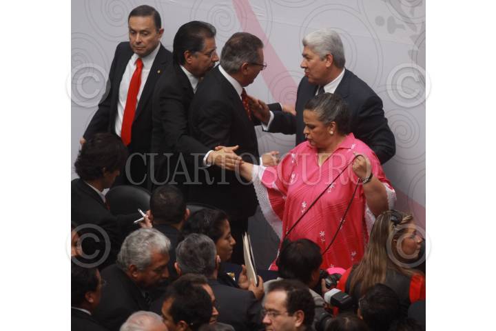 MÉXICO D.F., 25ENERO2010.- Beatriz Paredes presidenta nacional del PRI, se despide del Jesus Ortega Presidente Nacional del sol Azteca al termino del seminario Análisis para la Reforma Política, organizado por el Instituto Belisario Domínguez, que presidio el senador del PRI Manlio Fabio Beltrones. FOTO: SÁSHENKA GUTIÉRREZ/CUARTOSCURO.COM