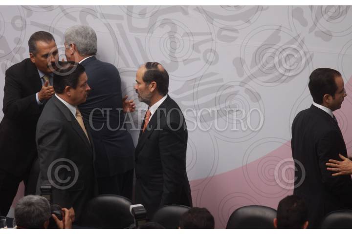 MÉXICO D.F., 25ENERO2010.- Gustavo Maderoconversa con Carlos Navarrete presidente de la Mesa Directiva del Senado de la República, mientras los senadores del PRI Manlio Fabio Beltrones se despide de Francisco Ramírez Acuña al término del seminario Análisis para la Reforma Política, organizado por el Instituto Belisario Domínguez, que presidio el senador del PRI Manlio Fabio Beltrones. FOTO: SÁSHENKA GUTIÉRREZ/CUARTOSCURO.COM