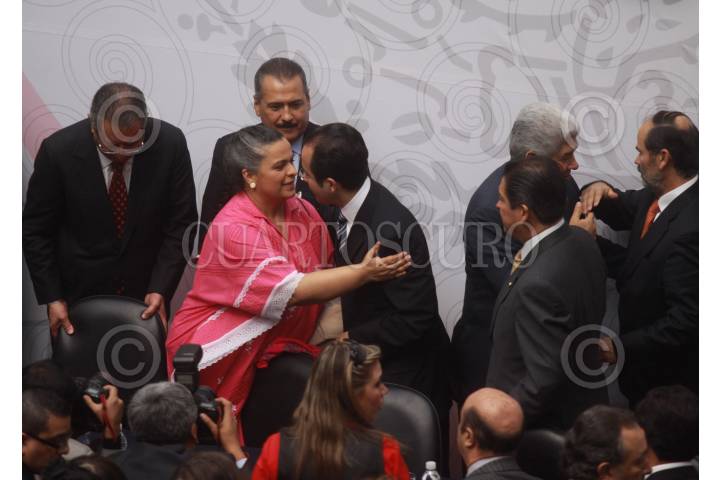 MÉXICO D.F., 25ENERO2010.- Beatriz Paredes presidenta nacional del PRI, se despide de César Nava Presidente Nacional del PAN al termino del seminario Análisis para la Reforma Política, organizado por el Instituto Belisario Domínguez, que presidio el senador del PRI Manlio Fabio Beltrones. FOTO: SÁSHENKA GUTIÉRREZ/CUARTOSCURO.COM