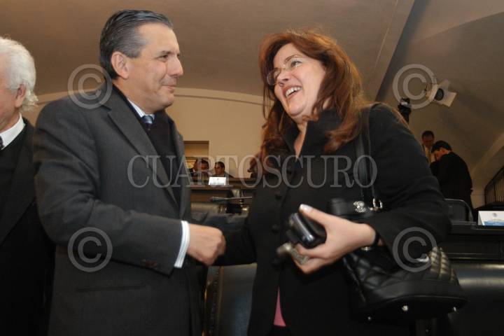 MÉXICO D.F. 05DICIEMBRE2006.- El legislador Heriberto Felix se despide de la perredista Yeidckol Polenvnsky durante la sesión de la Cámara de Senadores. El panista pidio licencia para poder incorporarse al gabinete federal. FOTO: GERMÁN ROMERO/CUARTOSCURO.COM