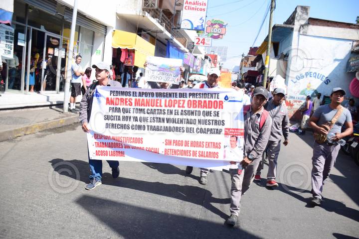 Trabajadores del Comité de Agua Potable y Alcantarillado protestaron en la presidencia municipal en Tapachula, por el despido injustificado de colaboradores del sindicato y denuncian acoso sexual al interior de la dependencia.
