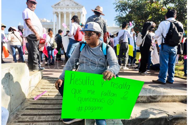 XALAPA, VERACRUZ, 25ABRIL2024.- Cientos de trabajadores del extinto Seguro Popular se manifestaron porque no les han cumplido con el pago de laudo laboral por parte del gobierno de Veracruz. Tienen más de 7 años reclamando sus derechos. FOTO: YERANIA ROLÓN/CUARTOSCURO.COM