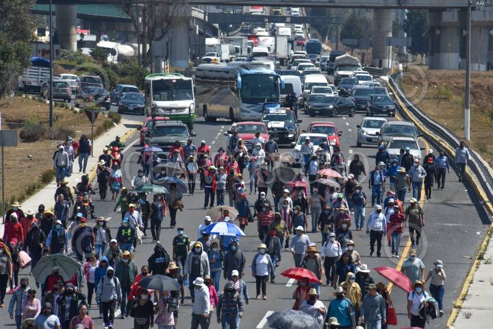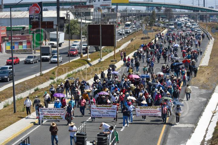 Ejidatarios de San Pedro Tultepec, en el municipio de Lerma realizaron una marcha al Tribunal Superior de Justicia del Estado de México, denunciando el despojo de 30 hectáreas en su comunidad, provocado caos vial.