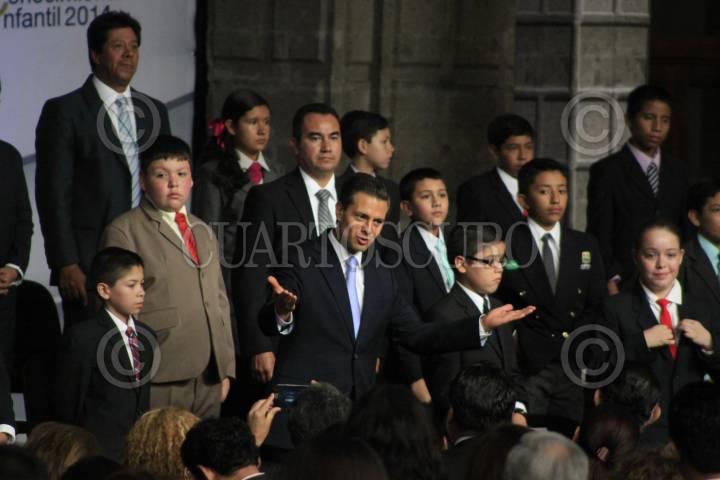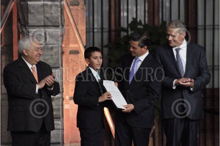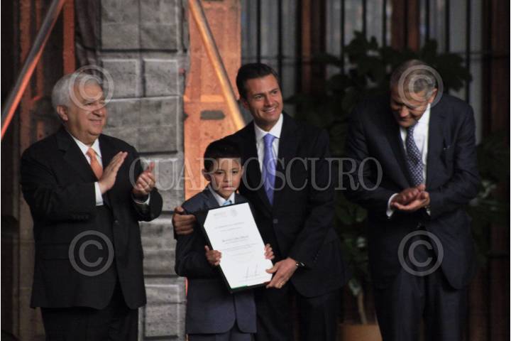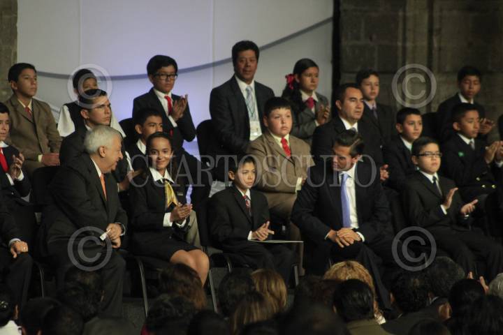 MÉXICO, D.F., 15AGOSTO2014.- Enrique Peña Nieto, Presidente de México, entego reconocimientos a los alumnos ganadores de la olimpiada del conocimiento infantil en Palacio Nacional. FOTO: MOISÉS PABLO /CUARTOSCURO.COM