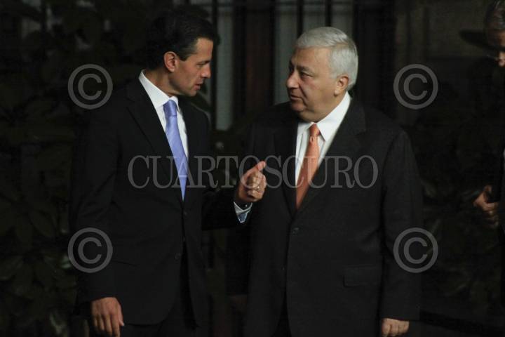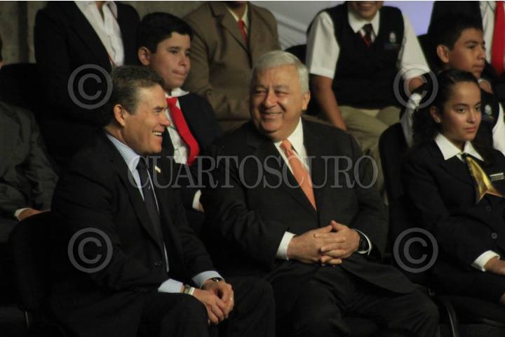 MÉXICO, D.F., 15AGOSTO2014.- Juan Díaz de la Torre y Emilio Chuayffet, secretario de Educación Pública, durante la entrega de reconocimientos a los alumnos ganadores de la olimpiada del conocimiento infantil en Palacio Nacional. FOTO: MOISÉS PABLO /CUARTOSCURO.COM