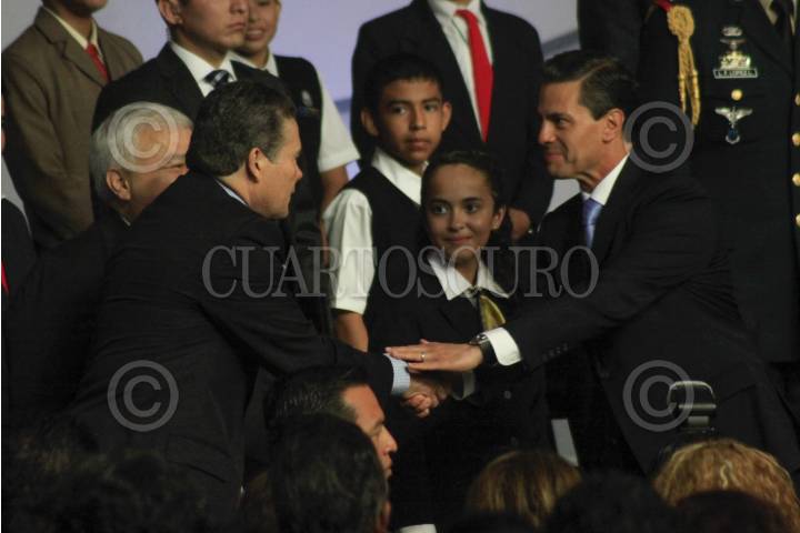 MÉXICO, D.F., 15AGOSTO2014.- Juan Dïaz de la Torre, líder del Sindicato nacional de Trabajadores de la Educación y Enrique Peña Nieto, Presidente de México, durante la entrega de reconocimientos a los alumnos ganadores de la olimpiada del conocimiento infantil en Palacio Nacional. FOTO: MOISÉS PABLO /CUARTOSCURO.COM