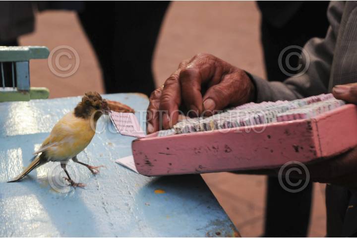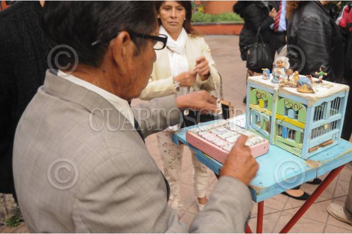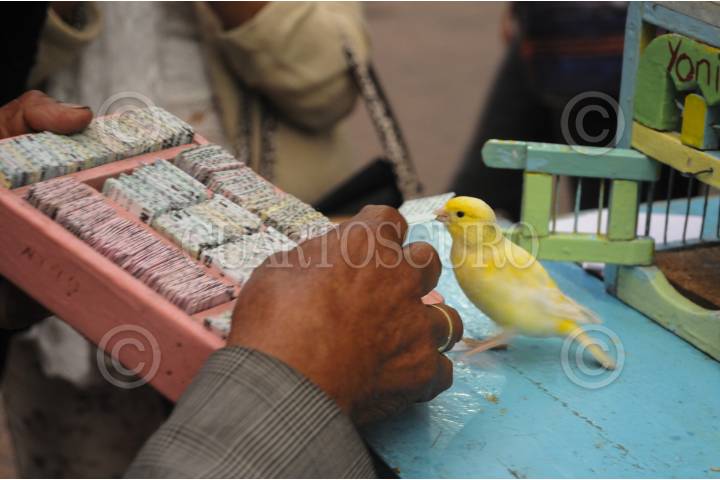 MÉXICO, D.F., 03OCTUBRE2015.- Un hombre se gana la vida acompañado con unos pajaritos que destinan la suerte por medio de mensajes en cartas miniaturas a visitantes que acuden al centro de la delegación Coyoacán. FOTO: SAÚL LÓPEZ /CUARTOSCURO.COM