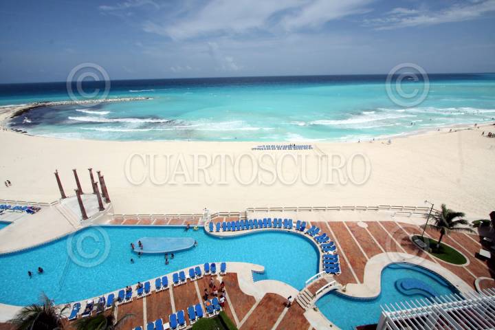 CANCÚN, QUINTANA ROO, 03JULIO2010.- Las playas cancunenses muestran un mejor rostro, luego de las labores de su recuperación que implemento el sector turístico y el ayuntamiento. Tras el huracán Wilma en el año 2005 quedaron seriamente dañadas cuando los vientos se llevaron la arena. FOTO: AMARANTA PRIETO/CUARTOSCURO.COM