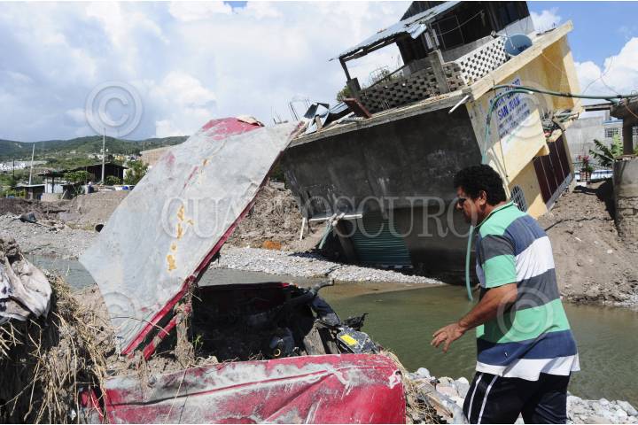 CHILPANCINGO, GUERRERO, 04OCTUBRE2013.-A 20 días de la tormenta Manuel e Íngrid, los estragos ya causan desesperación entre la población, tal es el caso, de Mariano Peñaloza quien pide a las autoridades que la ayuden con una máquina para desenterrar del cauce del rio Huacapa 7 pipas que dice son de sus propiedad y una camioneta silverado que quedó inservible “ Mi vivienda, que no se mira ni donde estaba” menciono con tono de voz de una persona que lo ha perdido todo, recalcó que su patrimonio era de dos millones de pesos y solo pide que le ayuden con una máquina “ No quiero dinero”. FOTO: JOSÉ I. HERNÁNDEZ /CUARTOSCURO.COM