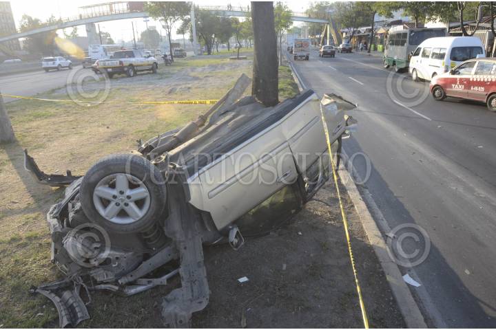 MÉXICO, D.F., 02MAYO2014.- Una camioneta X Trail se despedazo en su totalidad al estrellarse contra un poste de acero en la av. Zaragoza, esto entre avenida Telecomunicaciones y Guelatao en Iztapalapa. El conductor de aproximadamente 30 años murió en el lugar desprendiéndosele una pierna por el tremendo impacto. FOTO: LUIS CARBAYO /CUARTOSCURO.COM