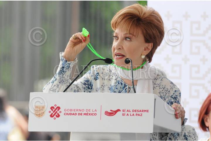 La primera actriz mexicana, Norma Nazareno, recibió su constancia de promotora del programa "Sí al Desarme, Sí a la Paz".