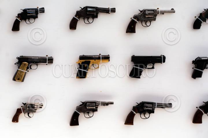CHILPANCINGO, GUERRERO, 24JUNIO2024.- La mañana de este lunes, en presencia de la Gobernadora Evelyn Salgado Pineda, se llevó a cabo la ceremonia de destrucción de armas, donde el comandante de la 35 zona militar, Jorge Nieto Sánchez, dio a conocer que en dicho evento se destruirían 367 armas cortas, 253 armas largas, 66 mil 966 cartuchos de distintos calibres y mil 208 cargadores, los cuales fueron decomisados en distintos operativos en el estado. FOTO: DASSAEV TÉLLEZ ADAME/CUARTOSCURO.COM