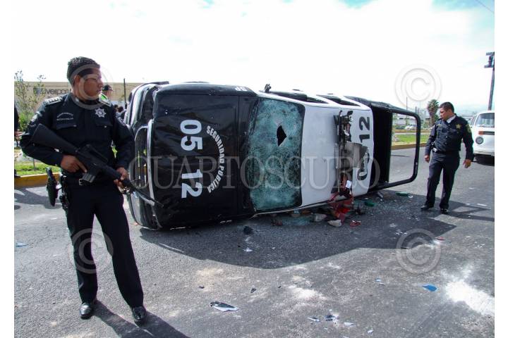 ECATEPEC, ESTADO DE MÉXICO, 18SEPTIEMBRE2008.- En el cruce de las calles de Av. Central y Primero de Mayo en la colonia Las Américas, integrantes de la Organizacion Transportes Unidos Mexiquences A.C. (TUMAC) Volcaron y destruyeron una unidad de la Policía Municipal. FOTO: JULIETA MORA/CUARTOSCURO.COM