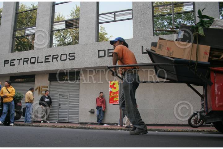 MÈXICO, D.F., 15AGOSTO2008.- Alrededor de las cuatro de la mañana, un grupo de 40 personas, encabezado por el ex funcionario del sindicato de Trabajadores Petroleros, Jorge Patricio Pulido Avendaño y el disidente, Omar Toledo Aburto, entraròn al edificio para substraer documentos e informacion que se encontraba dentro del edificio. FOTO: ENRIQUE ORDÒÑEZ/CUARTOSCURO.COM