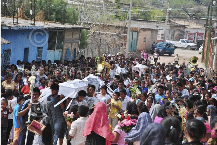 HUITZUCO, GUERRERO, 23MAYO2013.- Miembros de una familia de indígenas Nahuac, murieron luego de que un torrencial aguacero azoto a la comunidad de Tuliman municipio de Huitzuco, la vivienda construida con madera, fue destruida por una barda que estaba en la parte trasera de otra viviendas, que sirvió como tanque de almacenamiento de agua de la lluvia al no soportar el peso se desplomo sobre la humilde vivienda y el agua arrastro a la familia completa, vecinos narran que la lluvia inicio a las 9 de la noche del miércoles, acompañado de fuertes vientos y para las 10: 30 se fue la luz y luego se vino la lamentable tragedia que acabo con la vida de 4 integrantes de una familia de 7. Sobrevivieron una niña, su madre Apolonia Rueda Ortiz y el padre Heriberto Montaño Quiñones esta herido, en la tragedia murió Cecilia Montaño Rueda de 15 años Sandra Montaño Rueda de 13 años, Rosa Isela Montaño Rueda de 7 años y Heriberto Montaño Rueda de tres años, los cuerpos fueron rescatados por lugareños, protección civil llego hasta el otro día, y el presidente municipal acudió hasta las 11 de la mañana del jueves, a prometer la entrega de material para construir la vivienda. Las gráficas minutos antes del sepelio. FOTO: JOSÉ I. HERNÁNDEZ /CUARTOSURO.COM