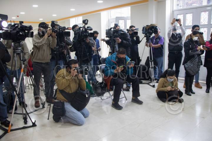 Periodistas en la conferencia de comerciantes ambulantes agremiados