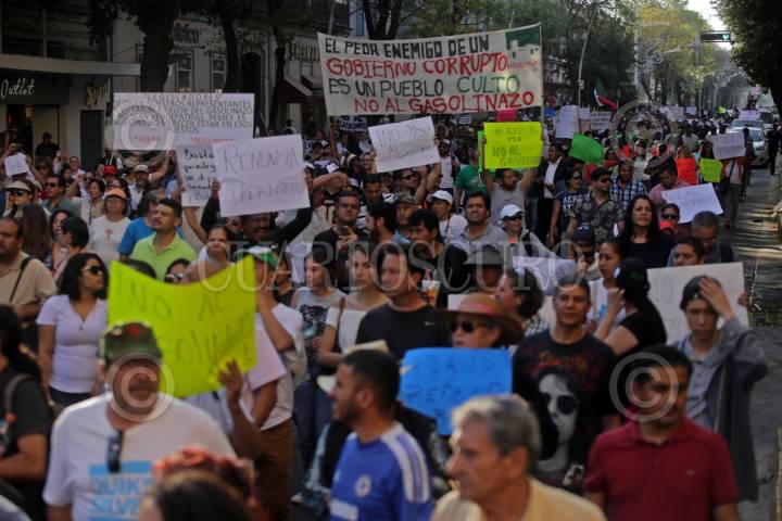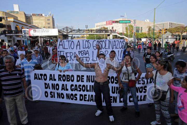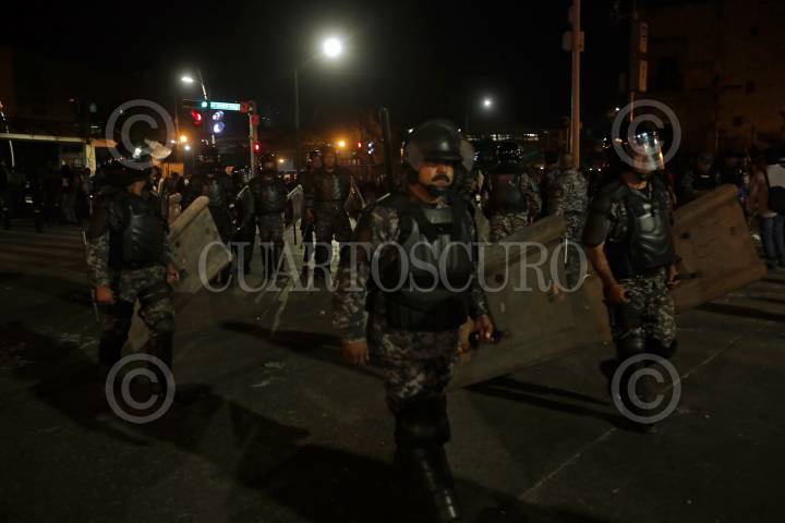 GUADLAJARA, JALISCO. 02ENERO2017.- Hoy cientos de tapatíos salieron a las calles de la ciudad para mostrar su repudio en contra del alza de los combustibles en todo el territorio nacional, diferentes protestas durante todo el día colapsaron la zona metropolitana, ya pasadas las horas en la Calzada Independencia y Juárez los manifestantes cerraron la arteria lo cual desato un altercado entre manifestantes y policías antimotines lo que dejo un saldo de 5 personas detenidas. FOTO : FERNANDO CARRANZA GARCIA / CUARTOSCURO.COM
