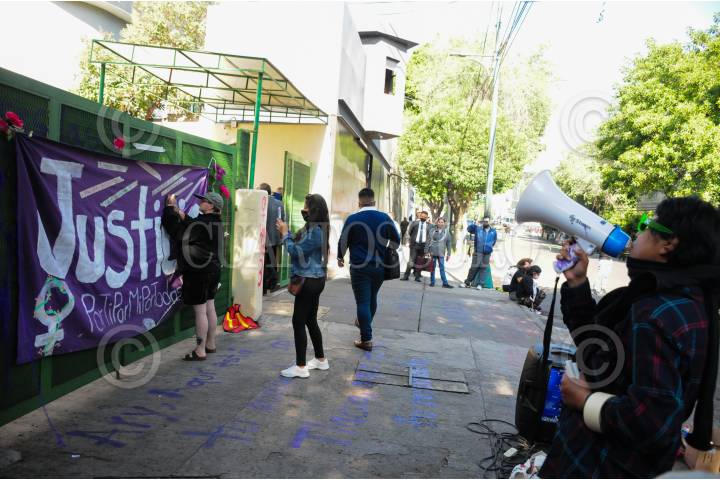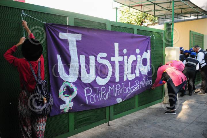 Apoyo de colectivas feministas afuera de los juzgados.