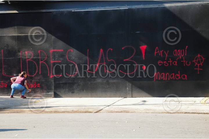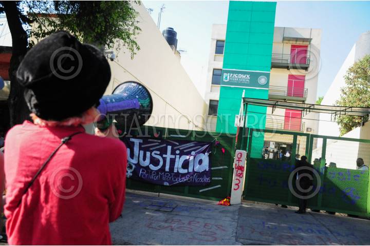 Afuera de los juzgados, feministas apoyan a las 3 detenidas que fueron retiradas del edificio de la CNDH.