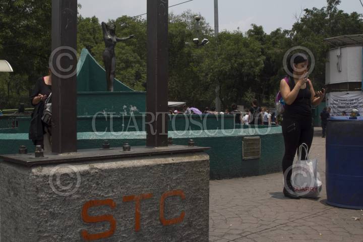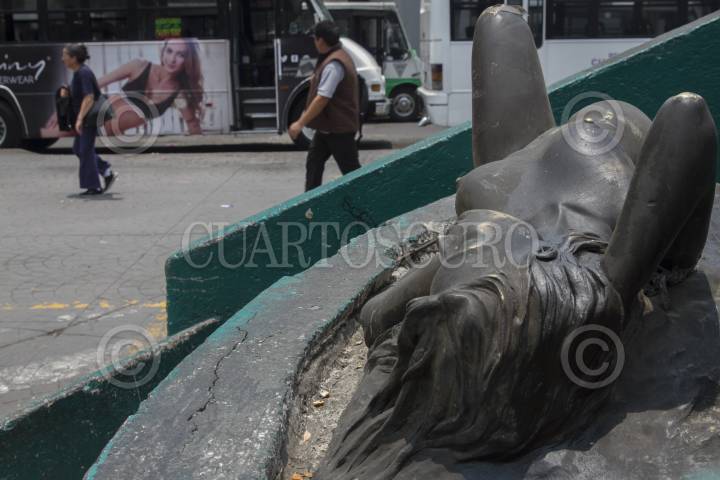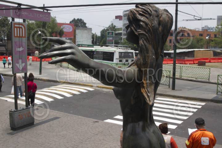 CIUDAD DE MÉXICO, 19MAYO2016.- Las esculturas "Soñando" y "Pensando en ti" que se ubican en las inmediaciones del paradero del metro Chapultepec, tras el retiro de los los puestos que copaban este espacio se hicieron más visibles a la vista de la gente que pasa por ahí. Las dos muestran deterioro en su patinado, aunque en el caso de "Soñando" es más evidente esta situación, autoridades de los Centros de Transferencia Modal (CETRAM), indicaron que autoridades del Instituto Nacional de Bellas Artes ya están estudiando su retiro para su conservación, aunque su destino real se desconoce. FOTO: MOISÉS PABLO /CUARTOSCURO.COM