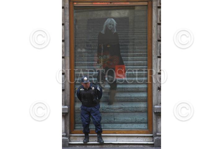 MÉXICO, D.F., 11ENERO2009.- Un policía vigila las calles del Centro Historico sin percatarse que una bella dama esta detrás de el. FOTO: RICARDO CASTELAN/CUARTOSCURO.COM