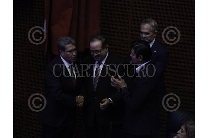 CIUDAD DE MÉXICO, 22AGOSTO2024.- Leonardo Lomelí Vanegas Rector, rector de la UNAM; Ricardo Monreal y Miguel Ángel Mancera durante Ceremonia Solemne de la develación de la inscripción en el Muro de honor de la leyenda “Universidad Nacional Autónoma de México. Por mi raza hablará el espíritu” que se llevó a cabo en el pleno de la Cámara de Senadores. FOTO: ANDREA MURCIA /CUARTOSCURO.COM