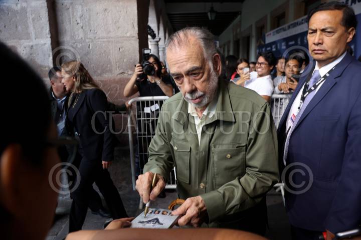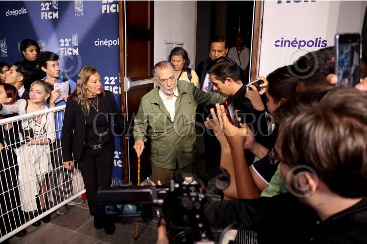 MORELIA, MICHOACÁN, 21OCTUBRE2024. Admiradores esperaron la salida del director Francis Ford Coppola del Teatro Mariano Matamoros para tomarse fotos y pedirle autógrafos, ya que el cineasta participa en el 22° Festival Internacional de Cine de Morelia. FOTO: EDGAR NEGRETE LIRA/CUARTOSCURO.COM