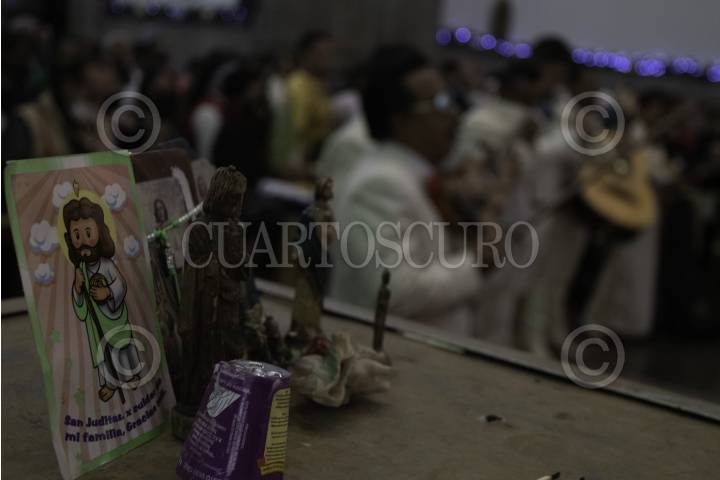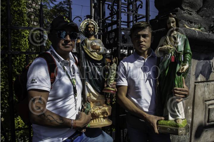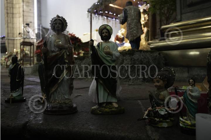 Cada 28 de mes decenas de devotos de San Judas Tadeo se congregan en la Iglesia San Hipolito ubicada afuera del metro Hidalgo y reforma con el fin de llevar sus figurillas a bendecir o pedir favores a su santo.
