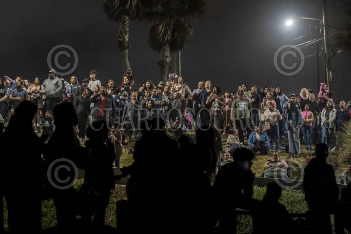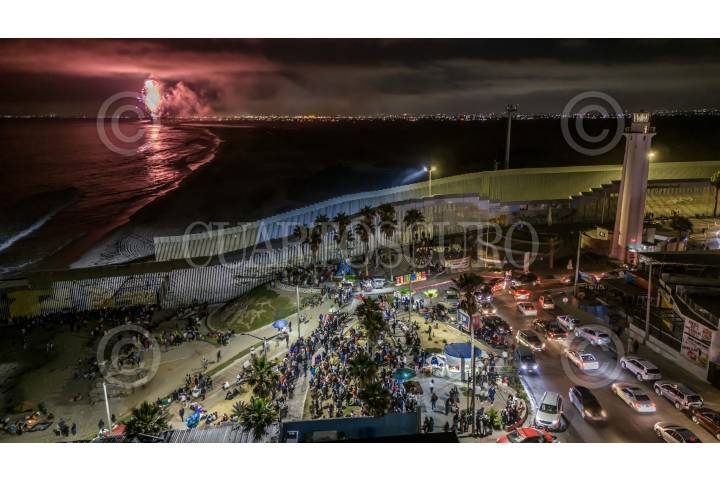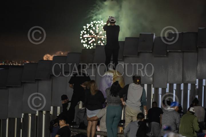 TIJUANA BAJA CALIFORNIA, 04JULIO2024.- Familias celebraron en Playas de Tijuana el día de la independencia de Estados Unidos. Miles de personas se reunieron la noche del jueves 4 de julio para ver el espectáculo pirotécnico desde este lado del muro. Pese a que algunas personas eran de origen estadounidenses, aseguran que prefieren celebrarlo en Tijuana con los suyos. Tzeithel Suárez, quien asistió con su familia a ver los fuegos artificiales, ya que ellos no pueden cruzar al lado americano, expresó su amor por la patria confesando que incluso recientemente sacó su doble nacionalidad mexicana. Algunos otros presenciaron el espectáculo por primera vez, como es el caso de Edgardo Villa, quien es originario de Sinaloa y a pesar de que lleva 10 años radicando en Tijuana, fue por su pequeña hija que decidió asistir. FOTO: OMAR MARTÍNEZ/CUARTOSCURO.COM