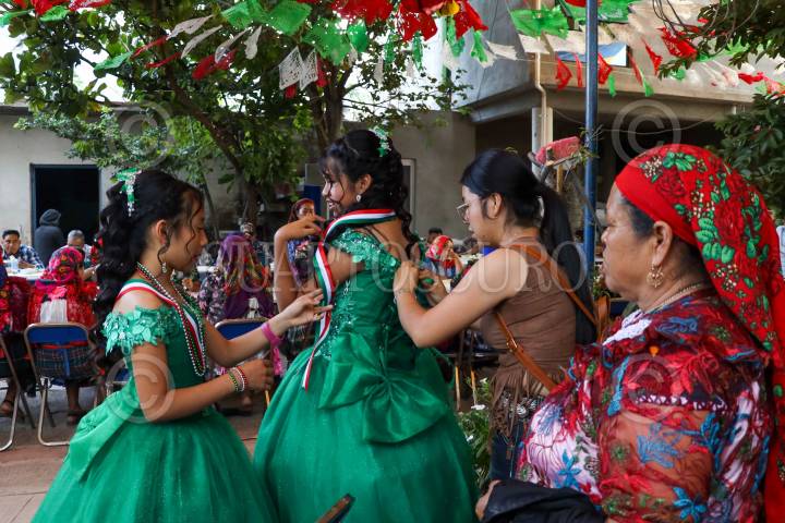 SAN BARTOLOMÉ QUIALANA, OAXACA, 15SEPTIEMBRE2024.- Para los pobladores de San Bartolomé Quialana, municipio zapoteca ubicado a 39 kilómetros de la capital de Oaxaca, las Fiestas Patrias son una festividad en la que se recuerda a los héroes independentistas y se trabaja en comunidad para llevar a cabo la festividad. El festejo inicia con la elección de la Señorita América y su coro. Previo al desfile patriótico y el Grito de Independencia que se lleva a cabo en el centro de la población, familiares y padrinos de la Señorita America elaboran alimentos que serán compartidos con la autoridad municipal. A las 18:00 horas, autoridades arriban al domicilio de la América para escoltarla al recorrido por las calles de la población y posteriormente llegar a la cancha municipal en donde se lleva a cabo la ceremonia cívica y el Grito de Independencia. San Bartolomé Quialana, es una comunidad con alto índice de migración, sin embargo conservan sus tradiciones ancestrales y el uso de su lengua indígena, incluso entonan el himno nacional en zapoteco. FOTO: CAROLINA JIMÉNEZ/CUARTOSCURO.COM