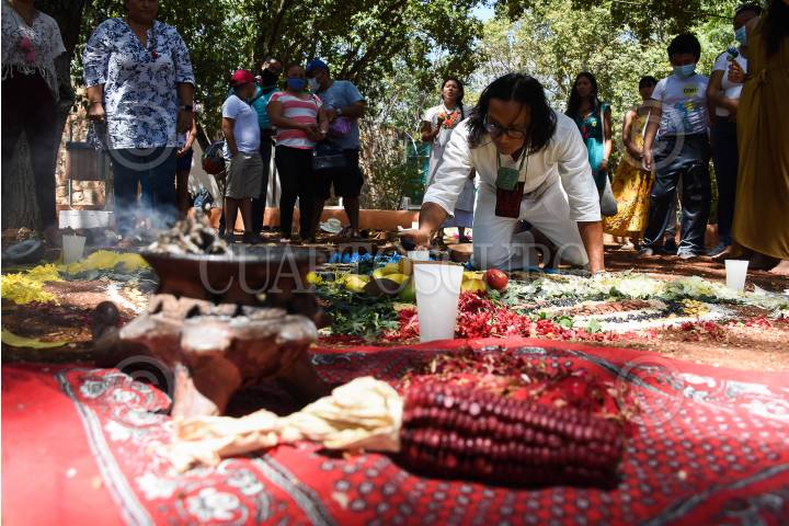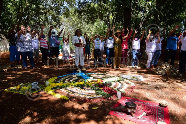 Ritual Maya con motivo del Día de la Madre Tierra en el parque Ximbal de Campeche, Campeche.