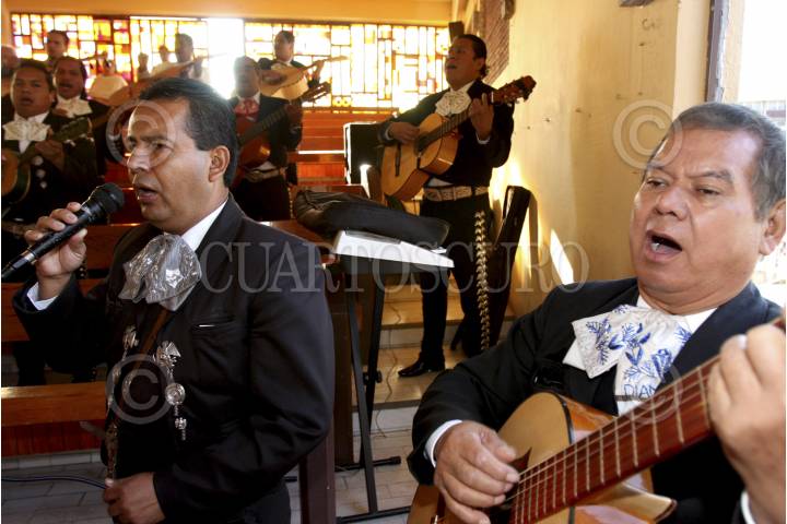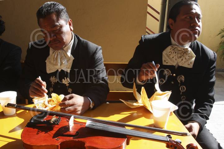 CUERNAVACA, MORELOS, 22NOVIEMBRE2012.- Mariachis y soneros celebran con misa y tamales el día de santa Cecilia, beata de los músicos. FOTO: ALMA LAFAYET /CUARTOSCURO.COM