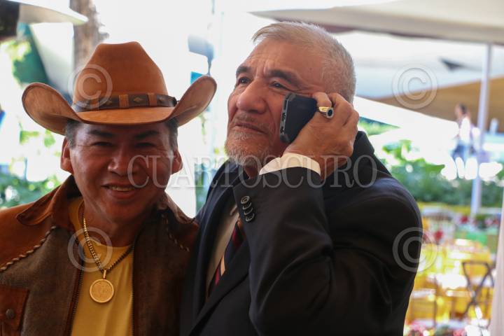 Roberto Cantoral Zucchi, director general de la Sociedad de Autores y Compositores, y el diputado Sergio Mayer durante su llegada a la celebración del Día del Compositor.