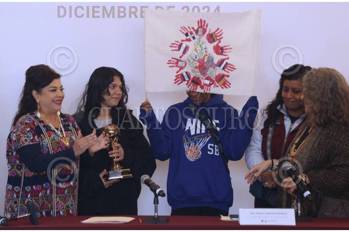 CIUDAD DE MÉXICO, 18DICIEMBRE2024.- Clara Brugada, jefa de gobierno de la Ciudad de México, en compañía de César Cravioto, secretario de Gobierno, y Araceli Damián, secretaria de Bienestar e Igualdad Social de la Ciudad de México, encabezaron el encuentro con población migrante en Centro de Atención e Integración Social (CAIS) Vasco de Quiroga en la colonia Morelos. Lo anterior, con motivo de la conmemoración del Día Internacional del Migrante.  FOTO: CUARTOSCURO.COM