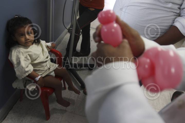 OAXACA, OAXACA, 25ABRIL2012.-Un grupo de payasos encabezados por Tito Tito Capotito llevaron este miércoles un poco de alegría a los niños del pabellón de oncología pediátrica del Hospital General Dr. Aurelio Valdivieso, esto como parte del día del niño. Los niños rieron por más de dos horas con las ocurrencias del grupo de 5 payasos quienes realizaron globoflexia, chistes y sketches, además de brindar diversos obsequios. FOTO: ARTURO PÉREZ ALFONSO /CUARTOSCURO.COM