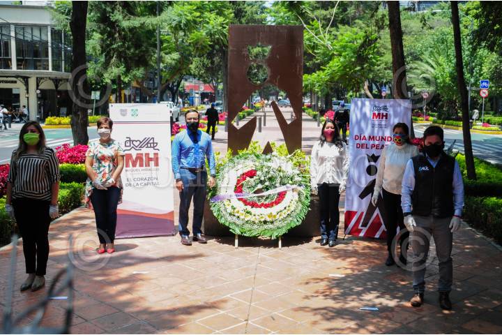 Consejales y el Alcalde de Miguel Hidalgo coloca una ofrenda en el monumento Rey Peatón.
