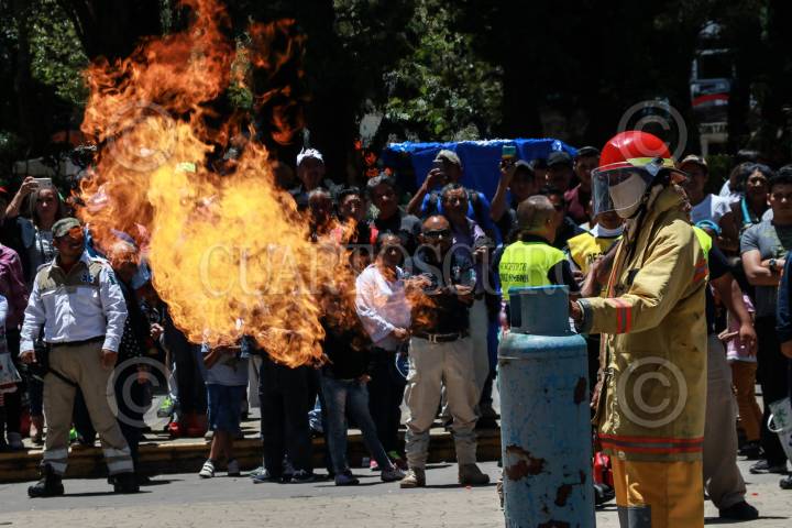 TOLUCA, ESTADO DE MÉXICO, 24JUNIO2025.- Elementos de la Cruz Roja Mexicana participaron en un simulacro por el Día Internacional del Socorrista. Como parte del ejercicio, un grupo de bomberos sofocó un fuego controlado. FOTO: CRISANTA ESPINOSA AGUILAR/CUARTOSCURO.COM