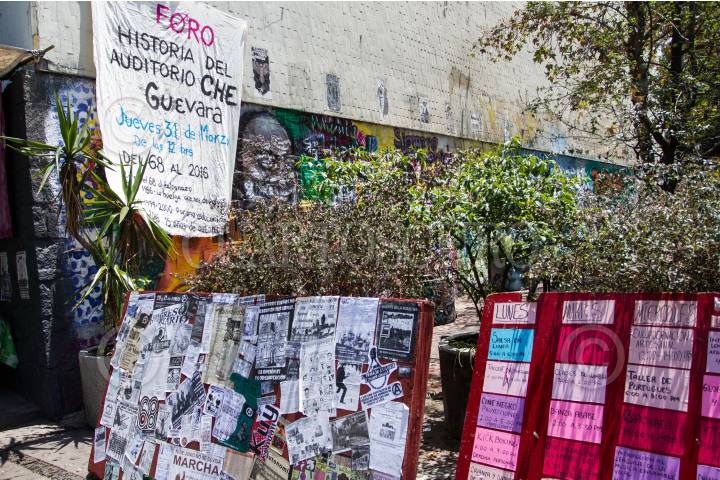 CIUDAD DE MÉXICO, 31MARZO2016.- Fachada del Auditorio Che Guevara, en la Facultad de Filosofía y Letras de la UNAM, donde las personas que tienen ocupado el lugar y los comerciantes de los alrededores impiden la toma de fotografías del inmueble. FOTO: ISAAC ESQUIVEL /CUARTOSCURO.COM
