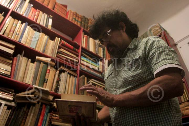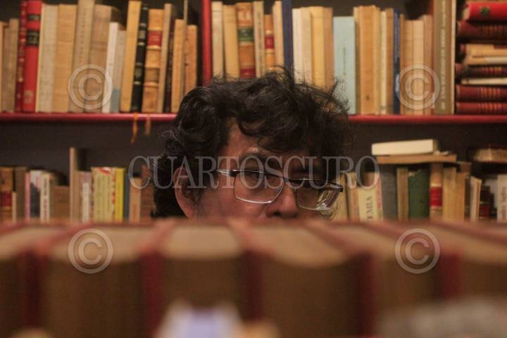 Max Ramos, librero y dueño de la Librería Oculta "El Burro Culto", vende libros autografiados, de colección antigua, y de estampa, en la colonia Roma Sur
