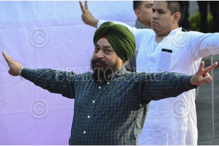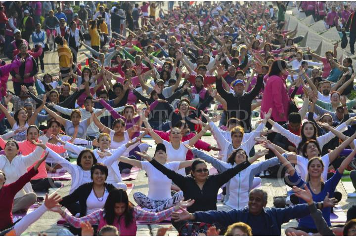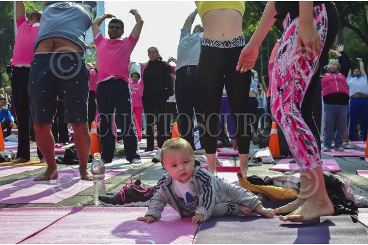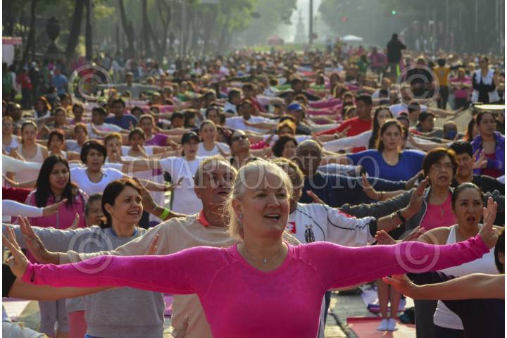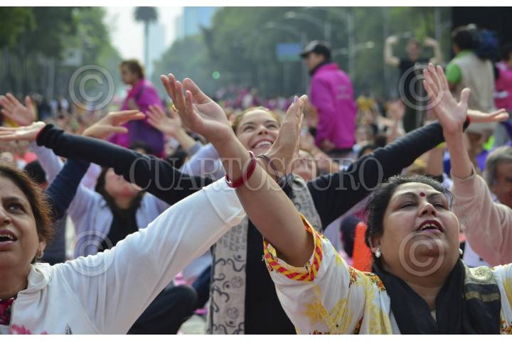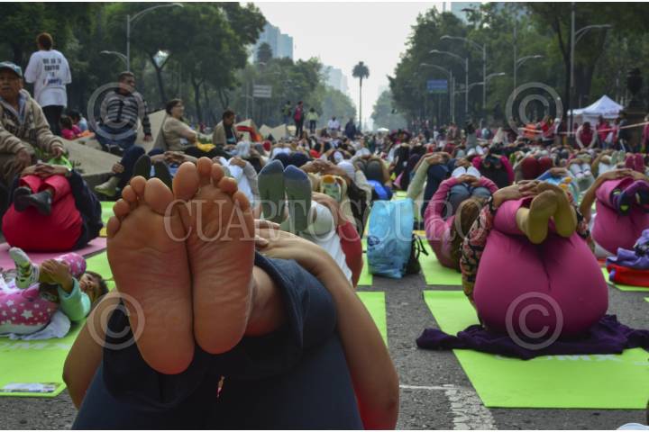 MÉXICO, D.F., 21JUNIO2015.- Cientos de personas asistieron a la Mega Clase sobre Av. Reforma con motivo del primer Día internacional de la Yoga. El yoga es una disclipina en donde, además de ejercitar el cuerpo, se trabaja la mente, de acuerdo con lo dicho por el Excelentísimo Embajador de India en México, Sujan R. Chinoy. FOTO: MARÍA JOSÉ MARTÍNEZ /CUARTOSCURO.COM