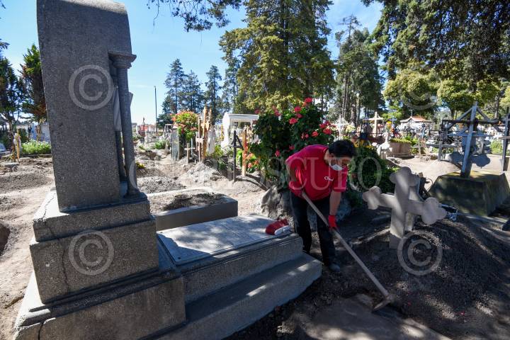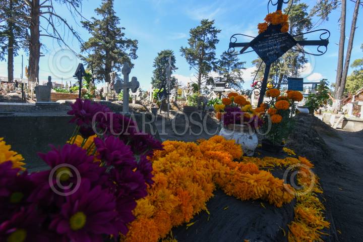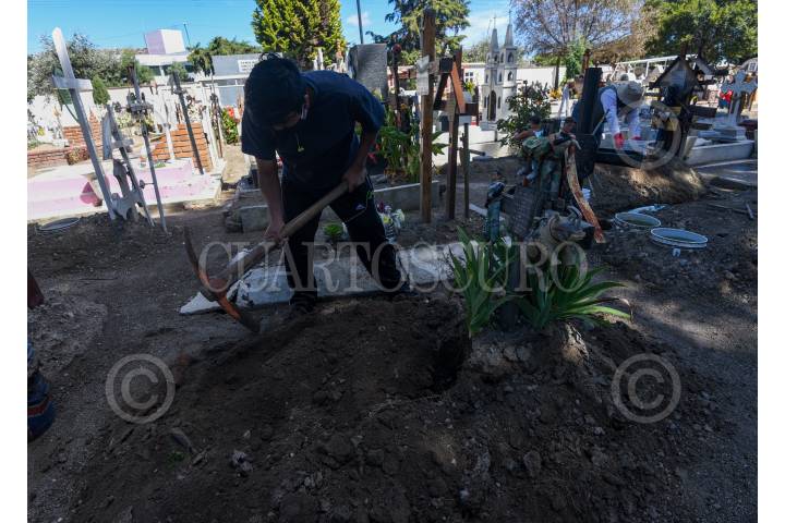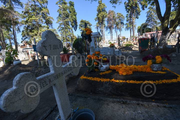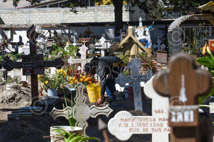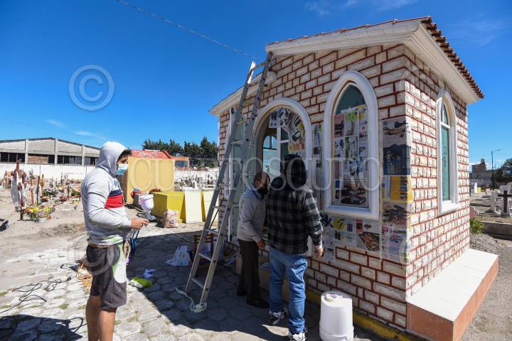 Previo a la celebración del Día de Muertos vecinos de Metepec acuden a los panteones a realizar limpieza general de las tumbas de sus familiares.