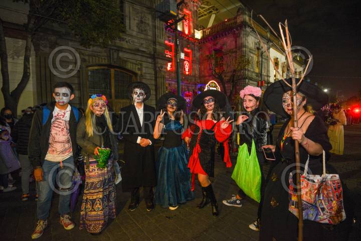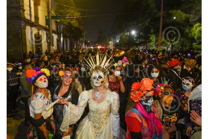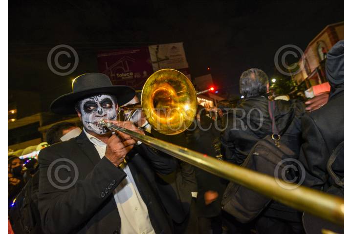 El recorrido de Catrineando se realizó de nueva cuenta en la ciudad de Toluca después de haber sido suspendido el año pasado por la pandemia por COVID-19, esto en el marco del Día de Muertos.