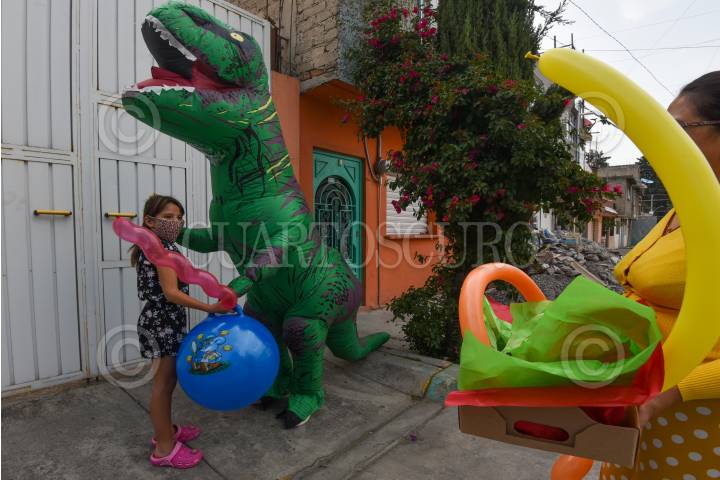 No todos los niños celebrarán de la misma forma algunos saldrán y otros recibirán una sorpresa en casa, como la empresa con causa El Detallote Tl de Tlatoani ofreció desayunos personalizados entregados a la puerta de su casa de cada niño por un T-rex, tomando todas las medidas higiénicas para evitar cualquier contagio por COVID-19.